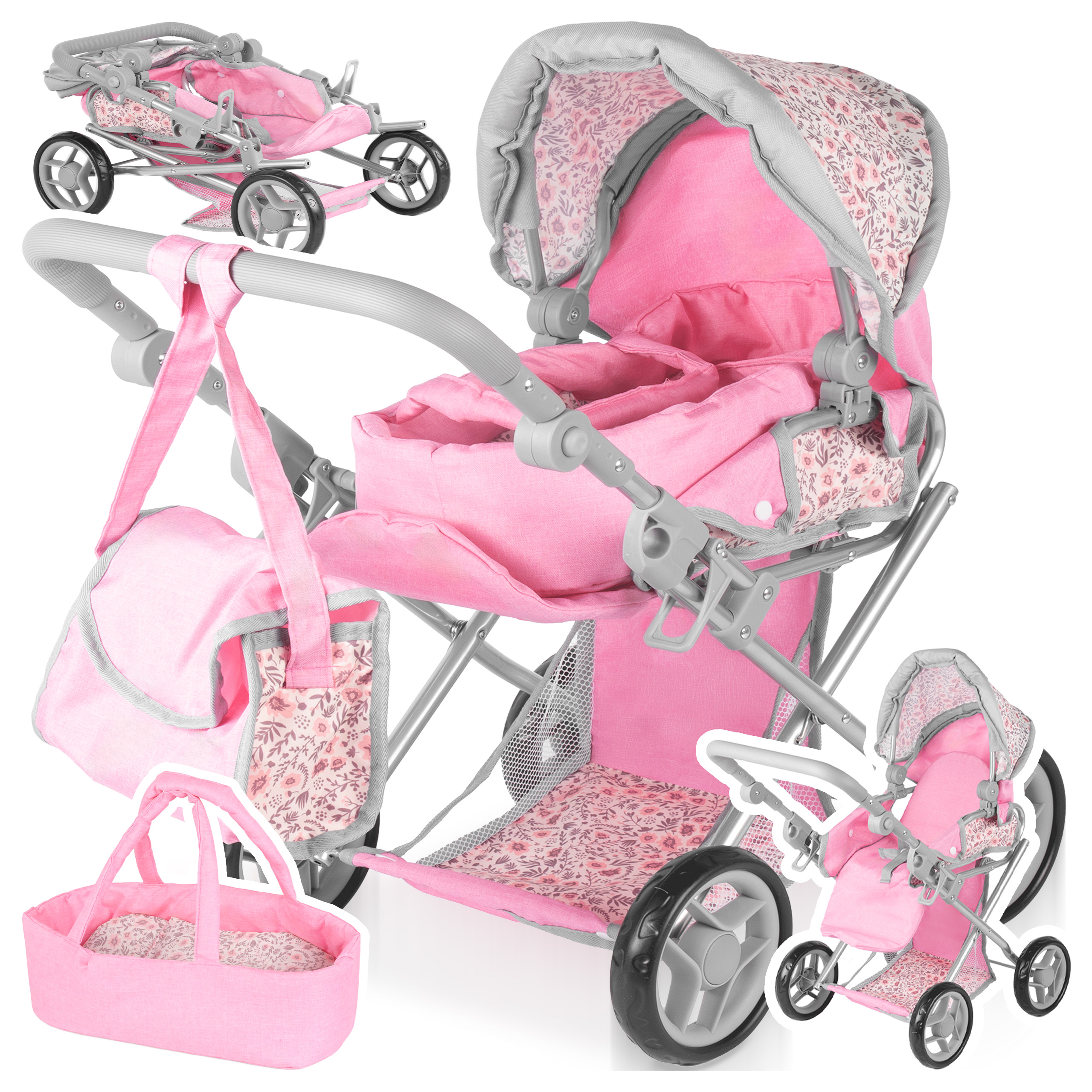 Wózek 3w1 dla lalek Pink Flowers