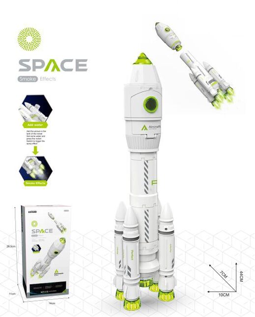 Rakieta kosmiczna austronauta dym dźwięk światło